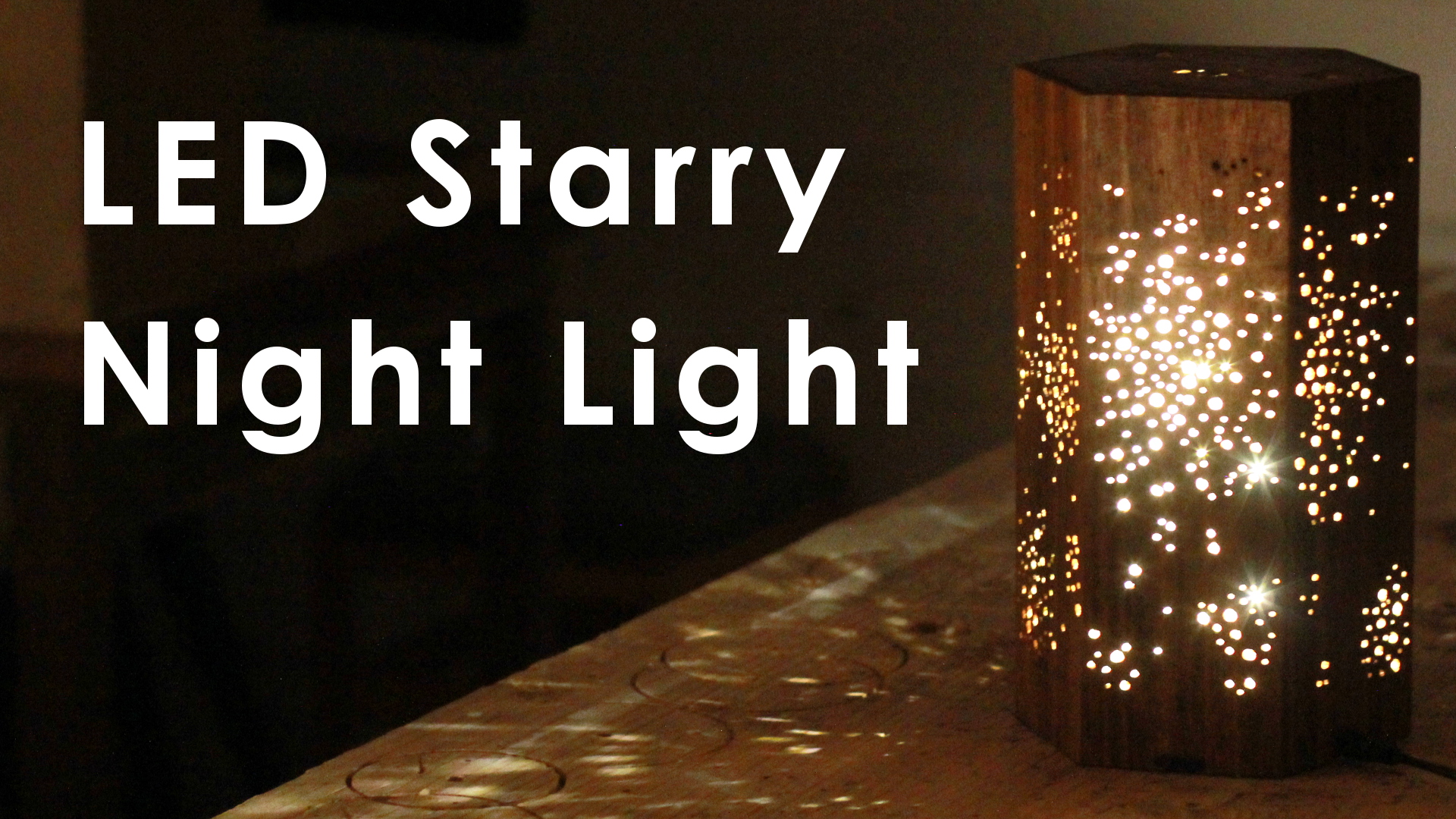 This LED nightlight features a star pattern and it lights up a dark room in a magical way. I used ipe for the wood, however any dark wood, or painted MDF for example would work well. This is a really fun project and would be great as an accent light in a room, in the middle of a table, or as a night light in the bedroom.