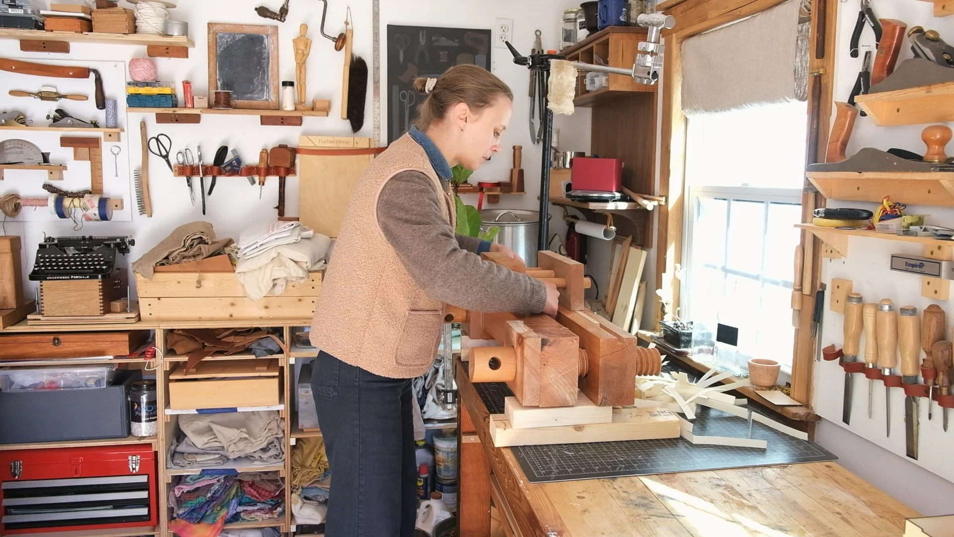 You can do bookbinding without fancy equipment at all, but it’s a real treat to use the tools we’ve built: the press, sewing frame, book vise, and plow cutter. They’re classic tools that make the whole process smoother, more efficient and you get very nice results.